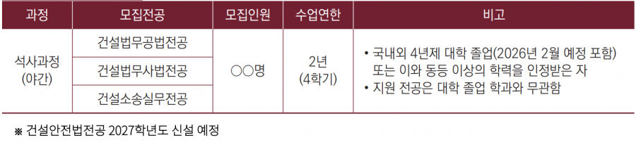 2026학년도 전기 건설법무대학원 석사학위과정 신입생 모집 안내